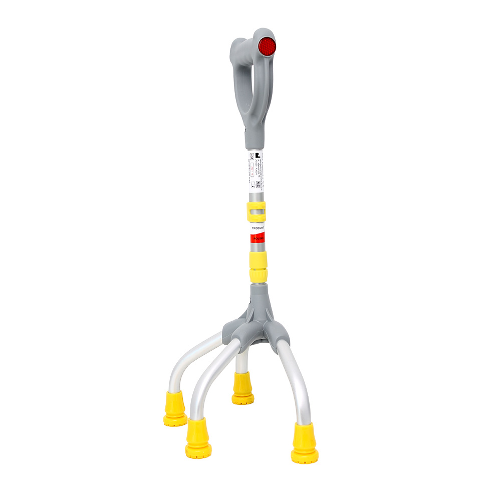 Baston cu 4 picioare, tetrapod, pentru copii cu maner inchis, gri, MikiRad pentru o mai buna stabilitate in deplasare.