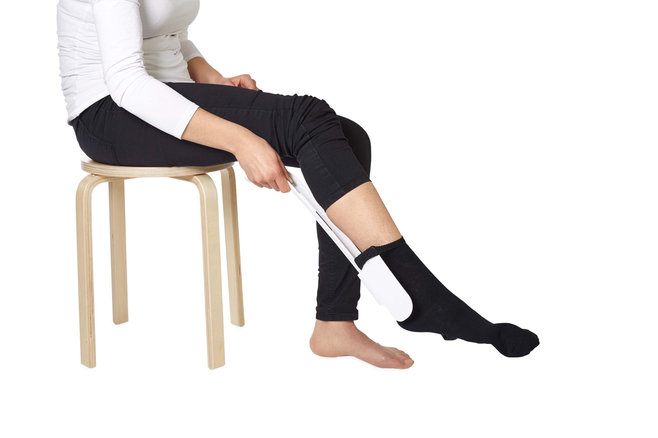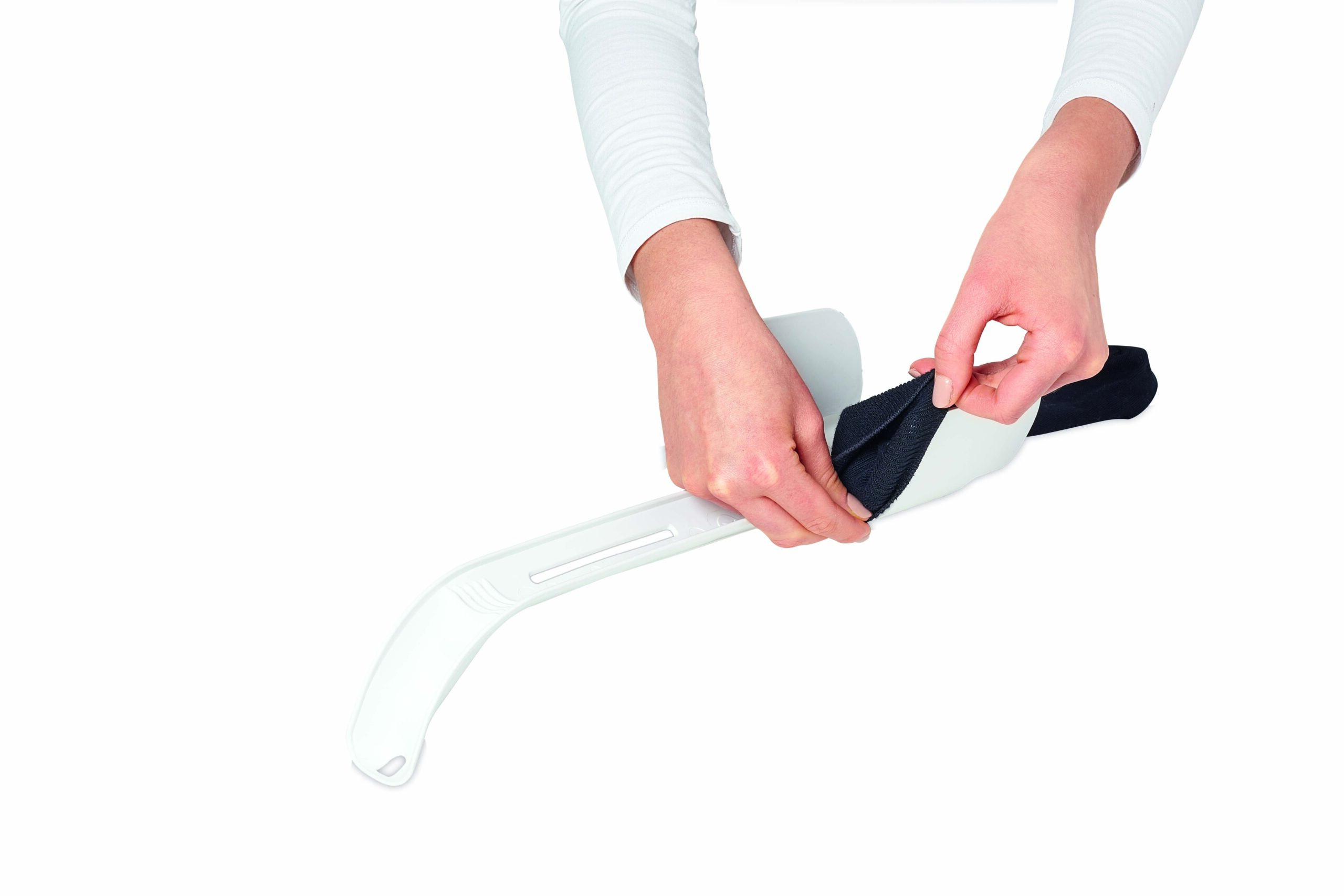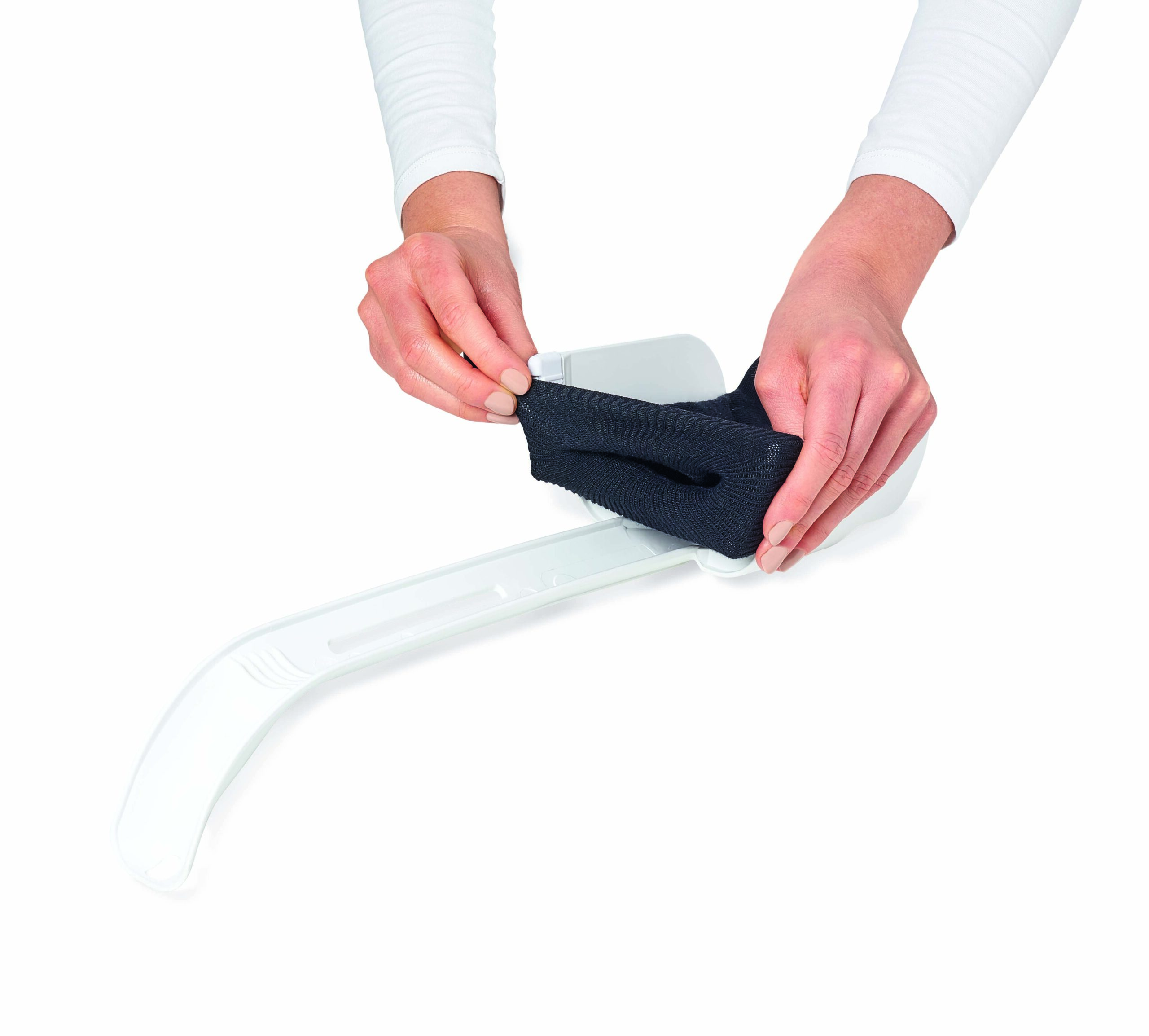 Dispozitivul pentru incaltarea ciorapilor – elimina necesitatea de a te apleca foarte mult pentru a incalta o pereche de ciorapi.