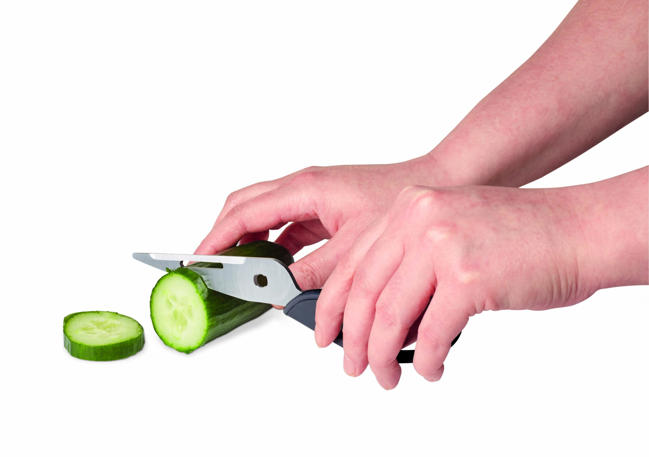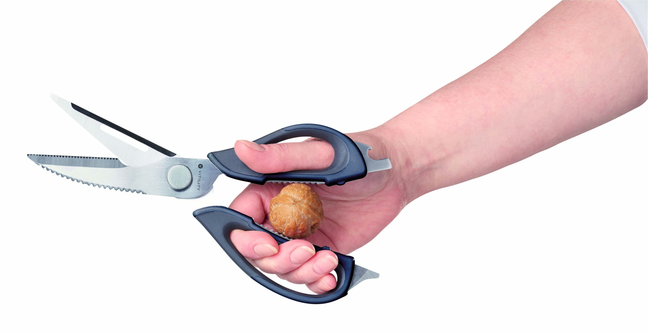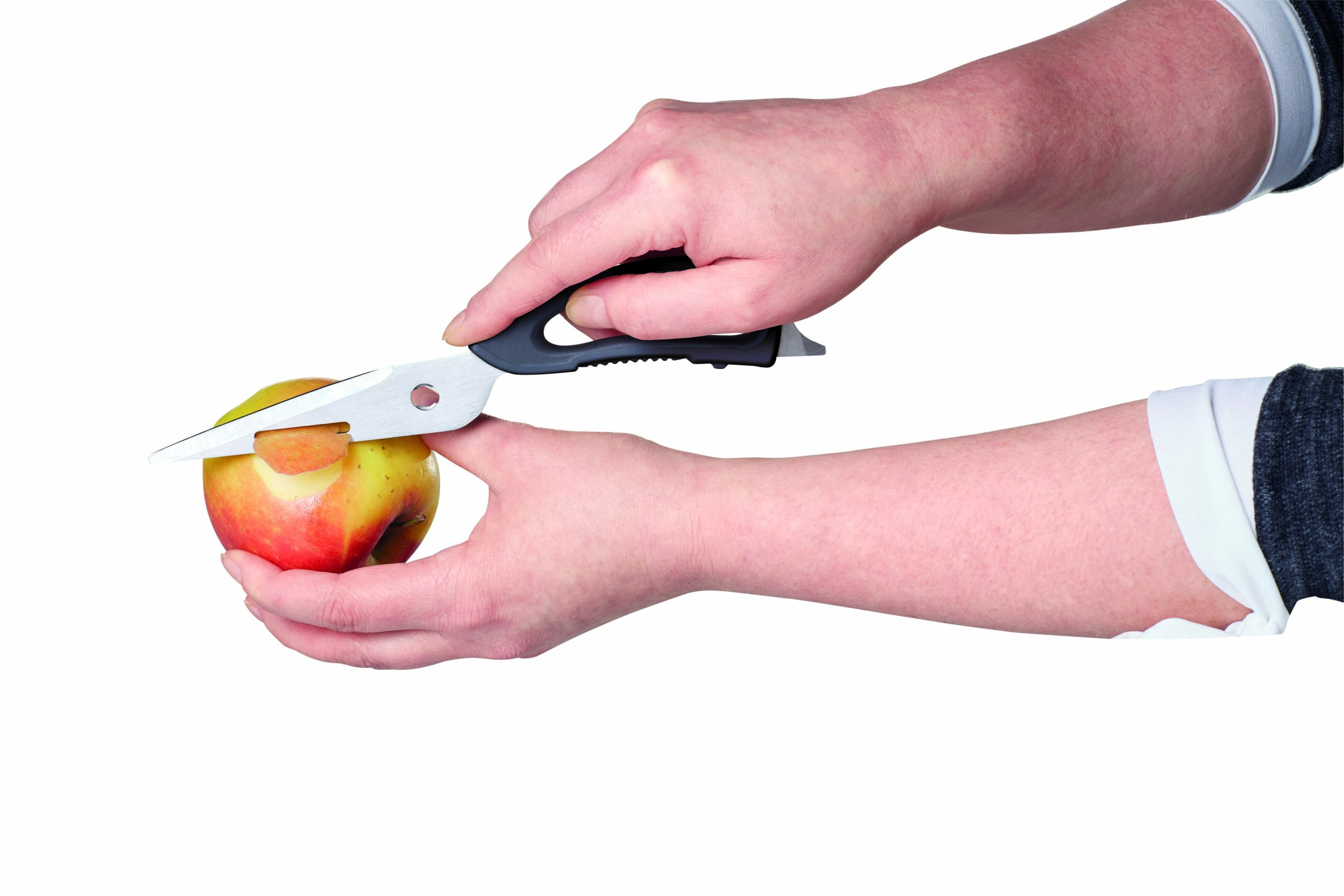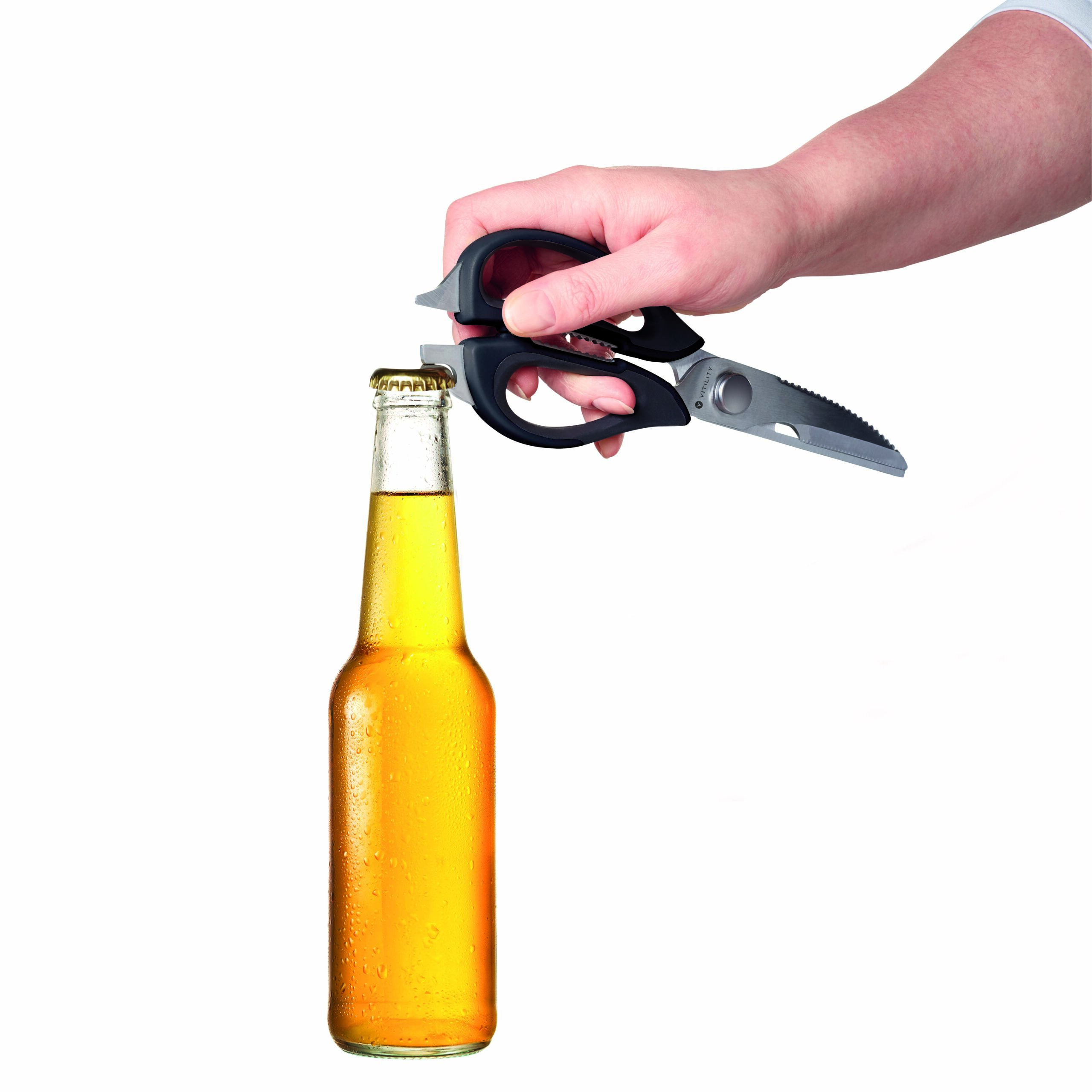 Foarfeca multifunctionala utilizata pentru diverse activitati in bucatarie. Utila pentru a taia hartie, plastic, oase de pui si peste, pentru a sparge nuci si alune. Lamele din otel inoxidabil taie rapid si eficient. Se pot detasa si folosi independent pentru a deschide sticle sau ca surubelnita pentru a desface suruburi.