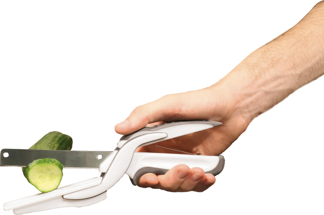 Cu aceasta foarfeca puteti toca verdeturi si legume foarte usor. Cu aceasta foarfeca aveti si cutit si tocator intr-un singur dispozitiv. Introduceti verdeata sau legumele intre cutit si tocator si apasati pe manere, acestea se vor dsface automat cand eliberati presiunea, datorita arcului cu care sunt dotate pentru o mai usoara utilizare. Manerul are un invelis de cauciuc pentru o mai buna pridere si pantru a impiedica alunecarea.