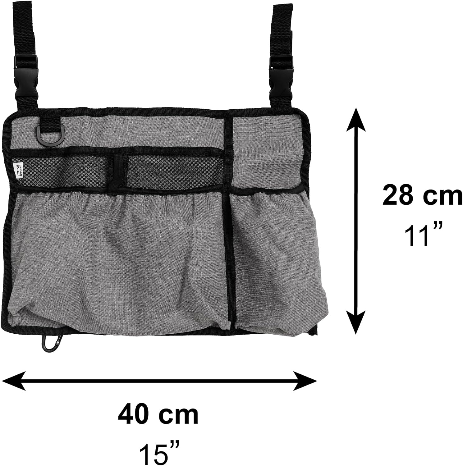 Geanta pentru scaun rulant, organizator cu 5 buzunare, impermeabila, prindere rapida cu catarame, 40 x 28 cm, negru, PEPE