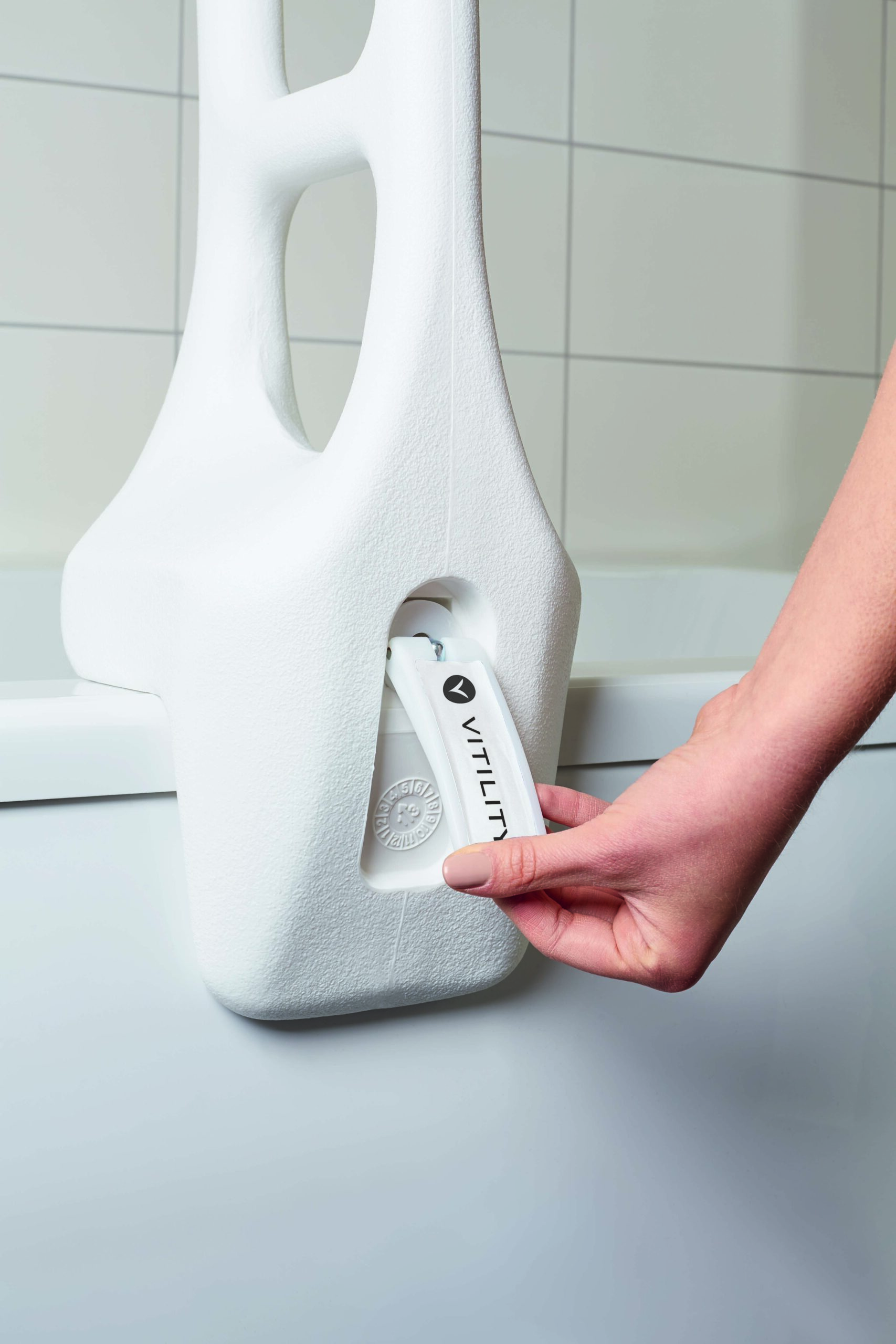 Manerul ajutator pentru cada ofera ajutor suplimentar pentru a intra sau a iesi din cada de baie. Se potriveste la mjoritatea cazilor si se monteaza usor fara a fi nevoie de unelte speciale. Dopurile de cauciuc previn deteriorarea cazii.