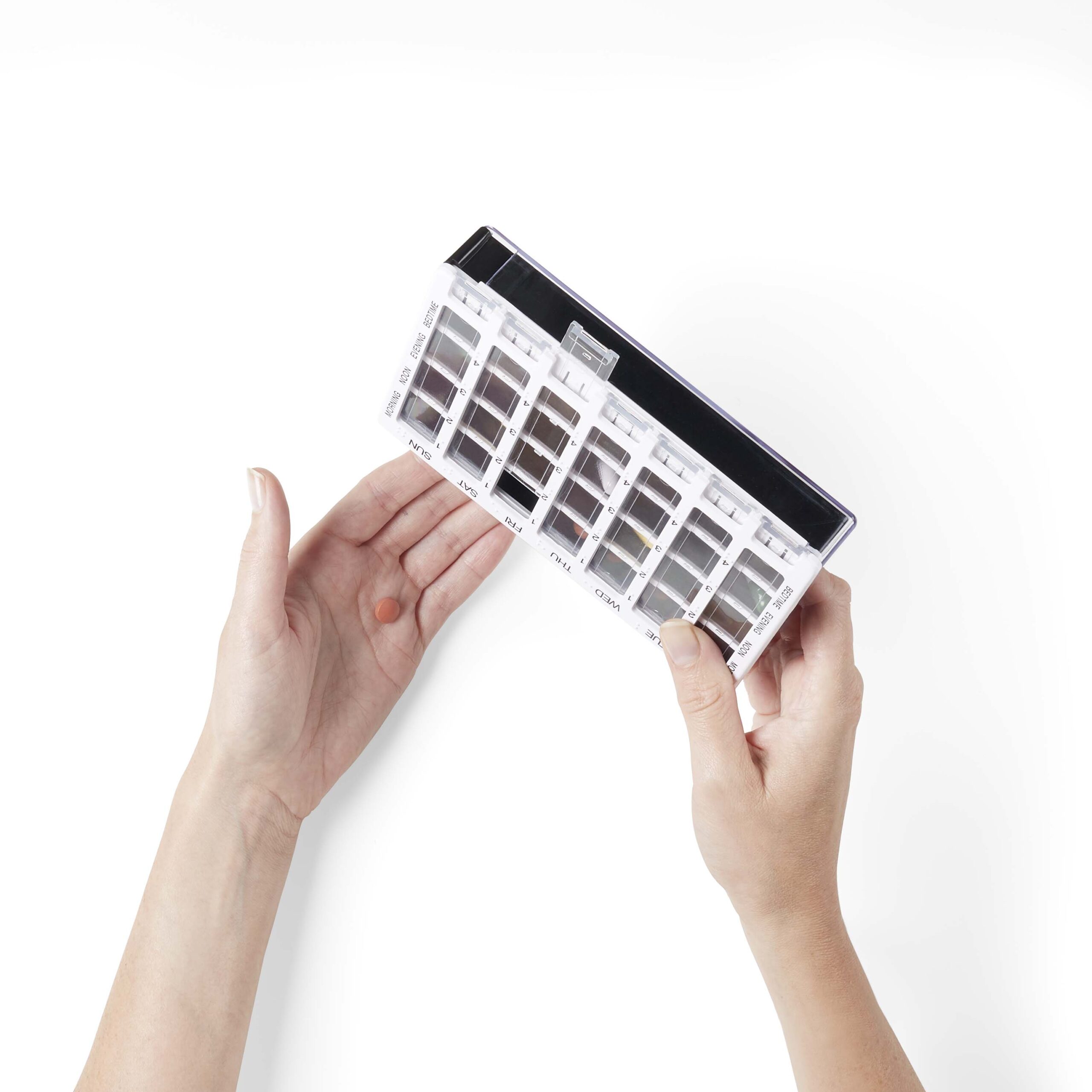 Beneficii: sa luati tratamentul asa cum a fost prescris de medicul dumneavoastra, pentru a avea o viata cat mai normala. Daca il oferiti unui apropiat (parinti, bunici) sa fiti mai linistit stiind ca persoana are un risc mai mic sa se incurce intre medicamente sau sa le uite. Acest organizator pentru medicamente (comprimate, capsule, gelule) va permite sa organizati tratamentul pe o perioada de o saptamana (7 zile).