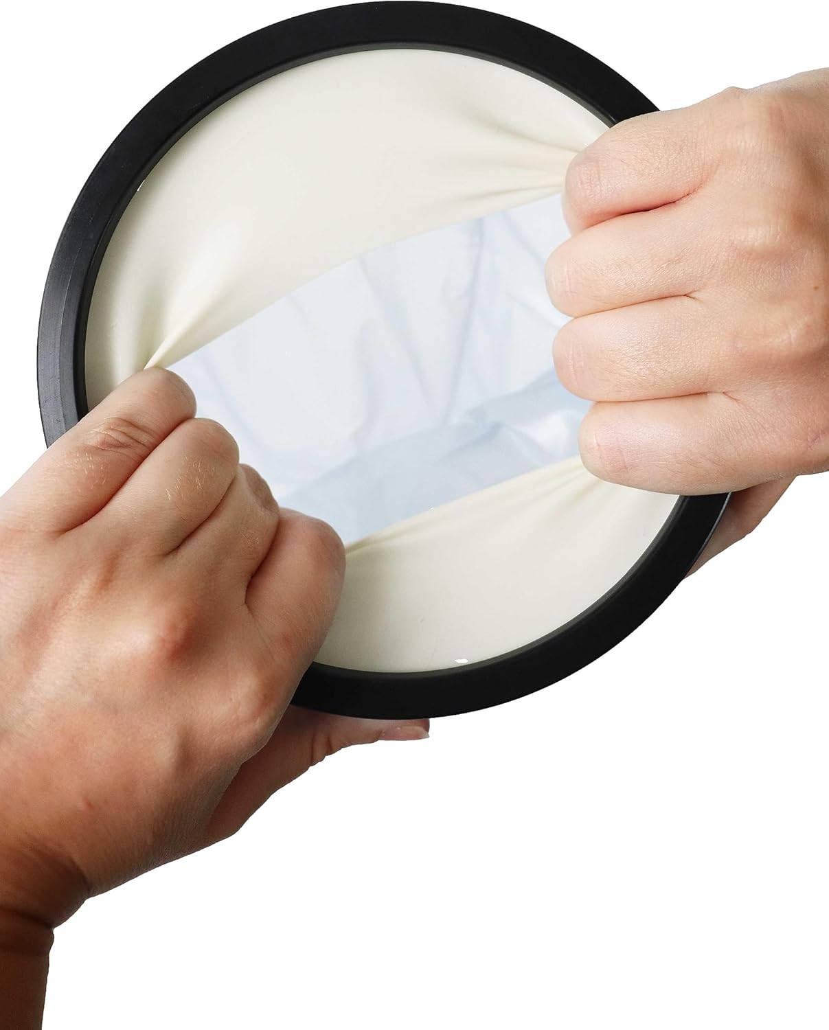 USOR DE FOLOSIT: Introdu articulatia in gaura din inel si gliseaza husa pana cand ghipsul este complet acoperit. Asigura-te ca este bine fixata si nu permite infiltrarea lichidului. Inainte de a o scoate, usuca siliconul cu un prosop.