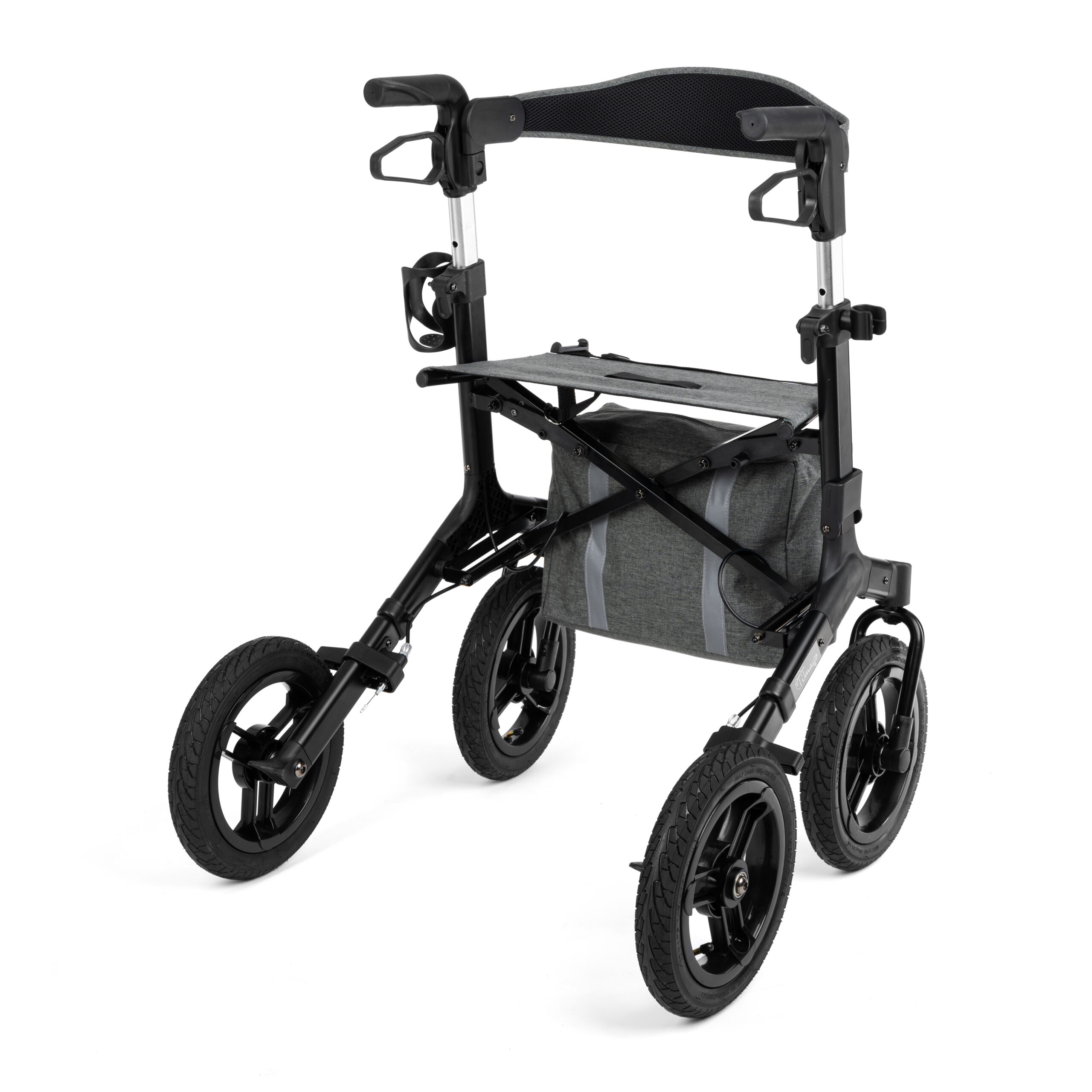 Rolator Yola din aluminiu cu 4 roti, ultrausor, pliabil, reglabil, geanta cumparaturi, gri, Timago
