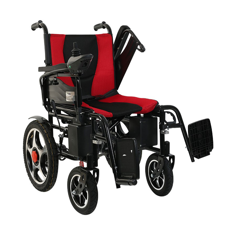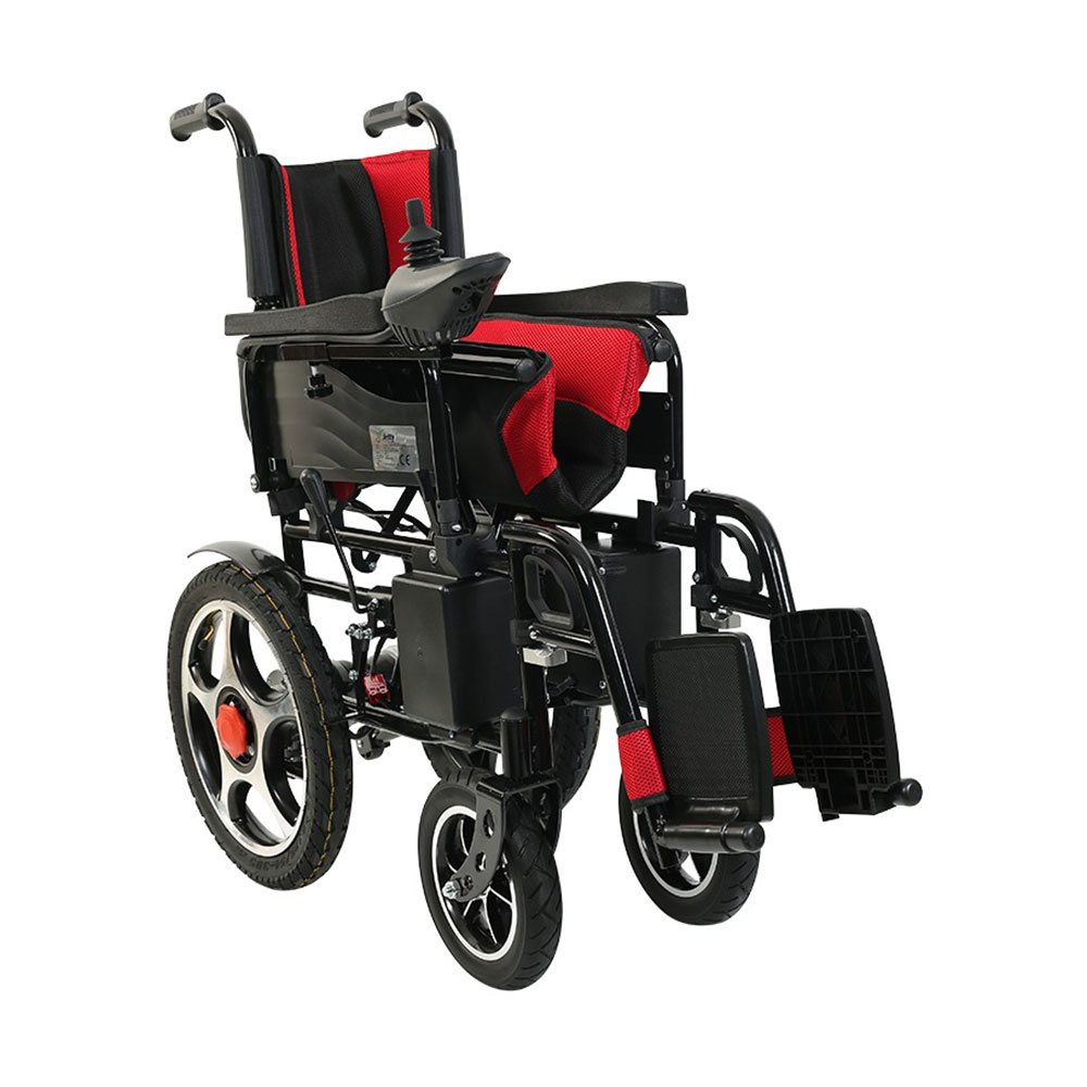 Scaun cu rotile electric, pliabil, manere rabatabile, rosu/negru JT-099