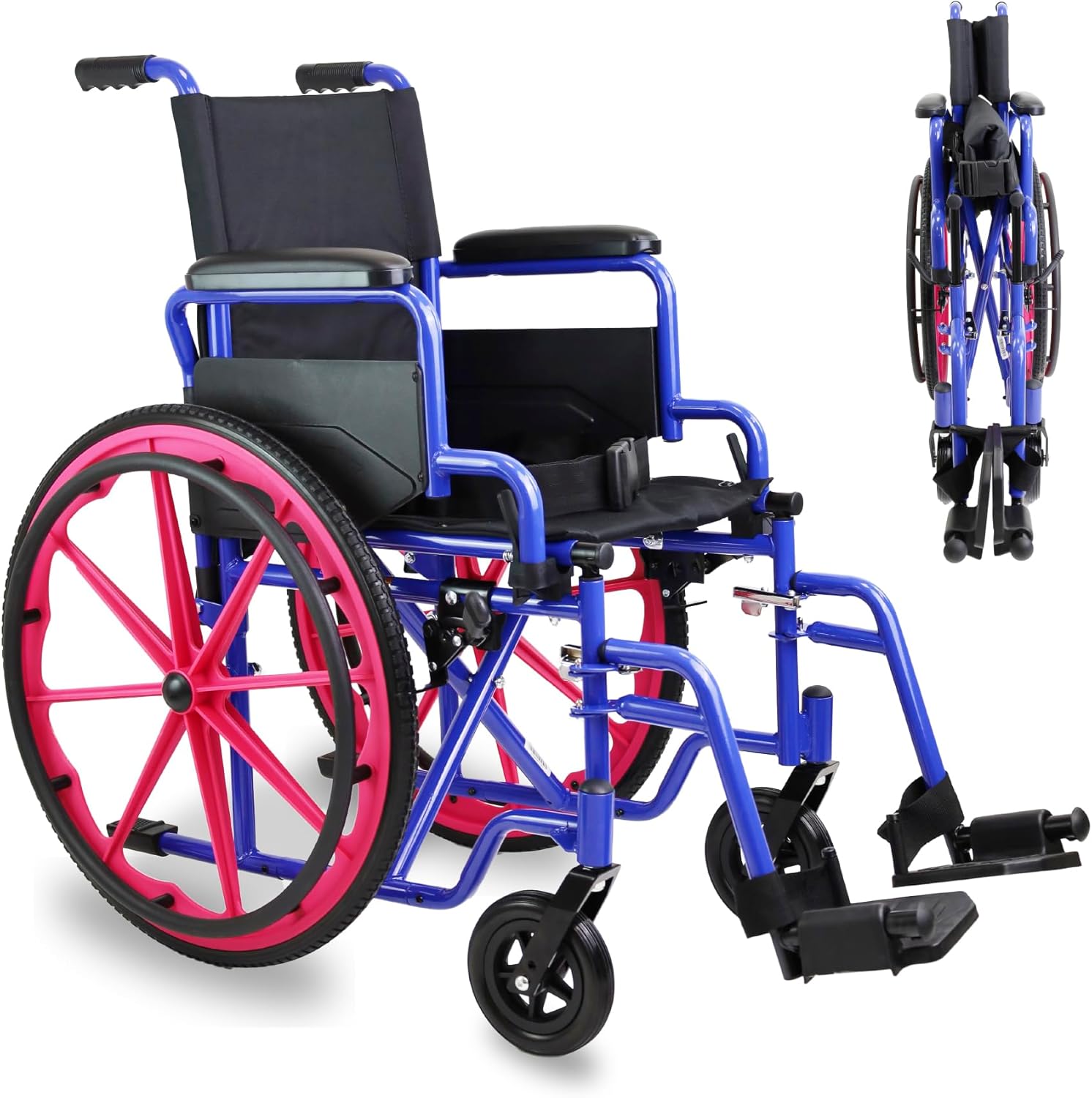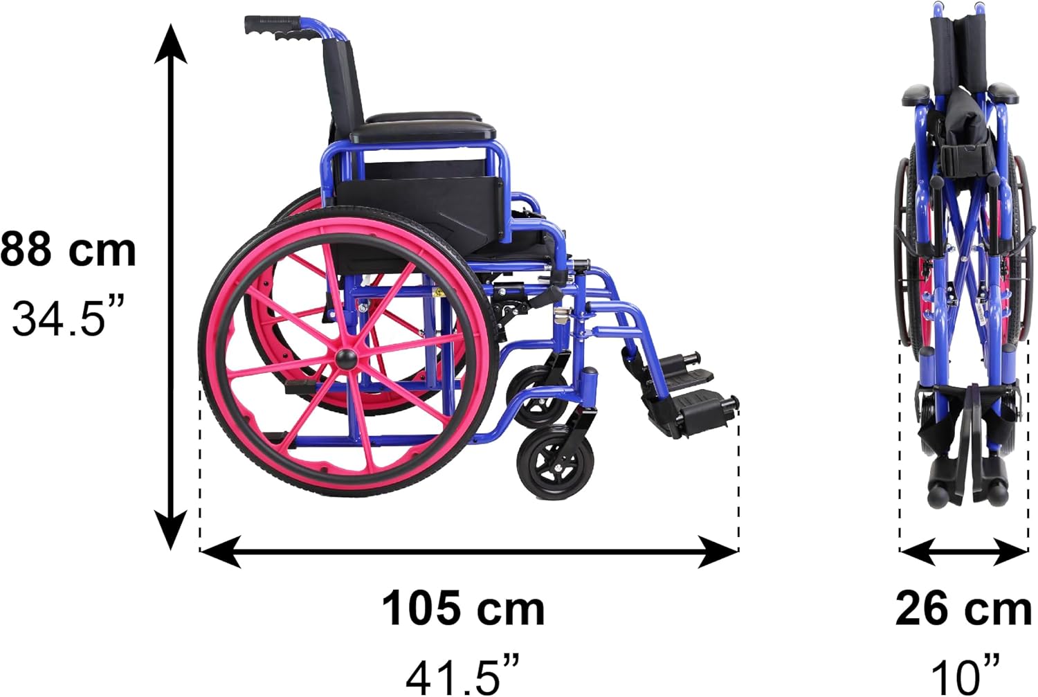 Scaun cu rotile pentru copii, pliabil, manere rabatabile, centura, sezut 35.5 cm, roz/albastru, PEPE