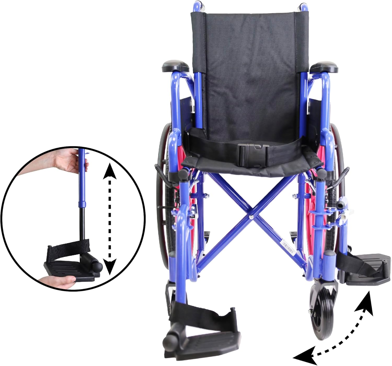 Pentru transferuri mai usoare, atat cotierele, cat si suporturile pentru picioare sunt pliabile, facilitand accesul si iesirea utilizatorului. Scaunul este dotat si cu curea pentru calcai reglabila pe inaltime. Cheia pentru reglaj este inclusa.