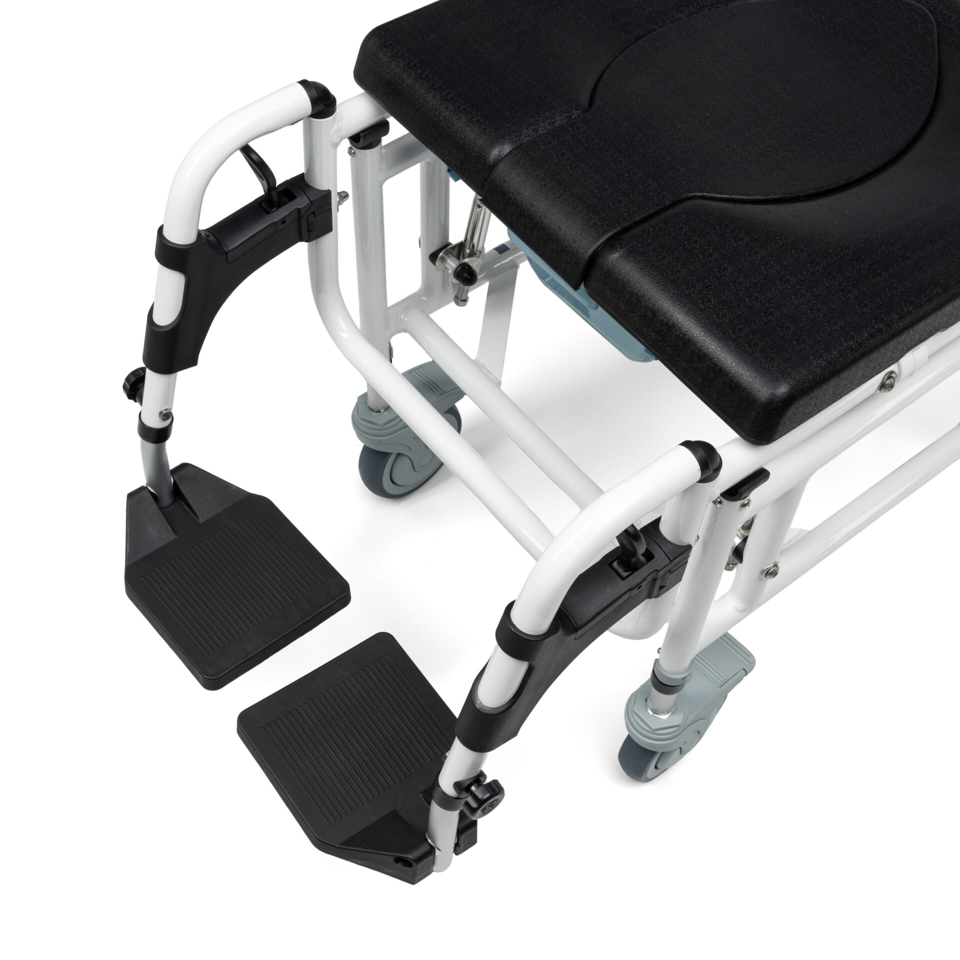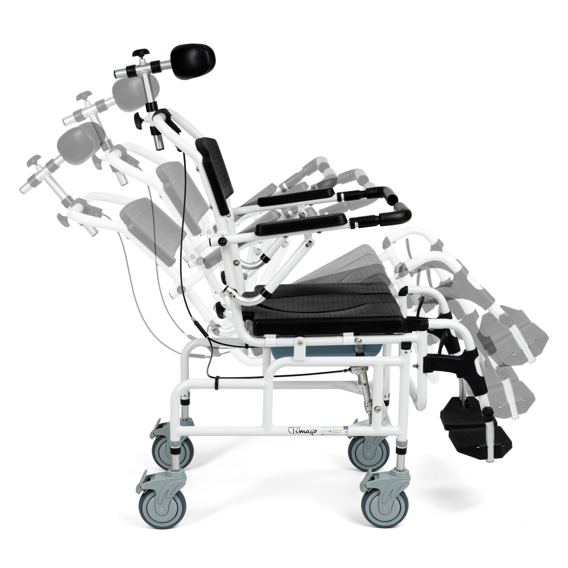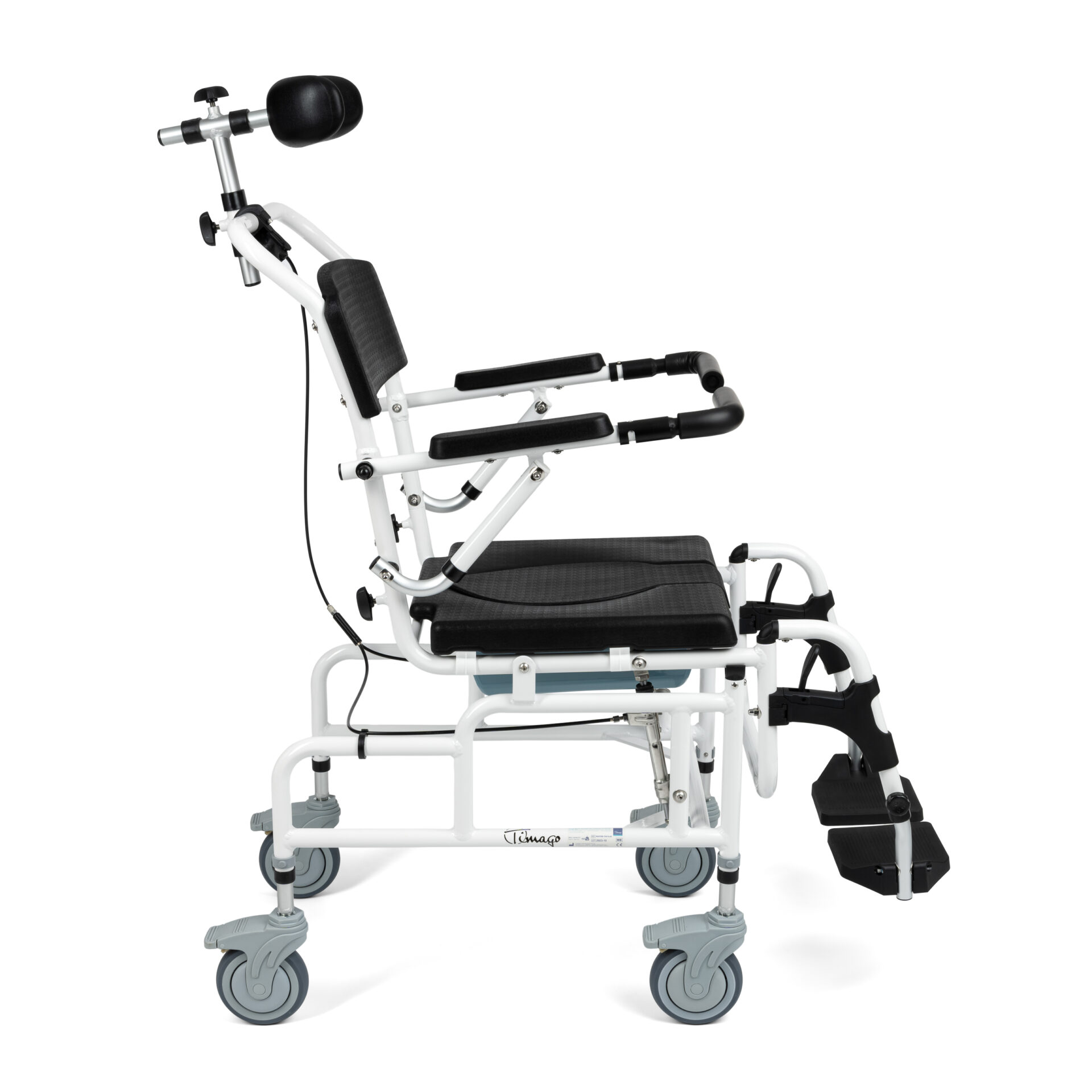 Scaun de transport pentru dus si toaleta cu inclinare MASTER-TIM PLUS – Scaunele de transport pentru dus si toaleta sunt concepute pentru persoanele care au probleme cu miscarea neasistata si pentru pacientii cu disfunctii si mobilitate redusa. Scaunul este potrivit numai pentru utilizare in interior. Scaunul poate fi utilizat numai cu asistenta unei persoane insotitoare. Scaunul functioneaza ca un scaun de transport pentru dus si toaleta datorita recipientului sanitar situat sub scaun si a celor patru roti pivotante. Acesta faciliteaza activitatile de igiena zilnica. Scaunul este recomandat in special persoanelor care au probleme de mobilitate cauzate de: paralizie, obezitate sau subponderalitate anormala, degenerari sau deformari ale membrelor, degenerari sau leziuni articulare, leziuni sau amputari ale membrelor, afectiuni cardiace si ale vaselor de sange si tulburari circulatorii.