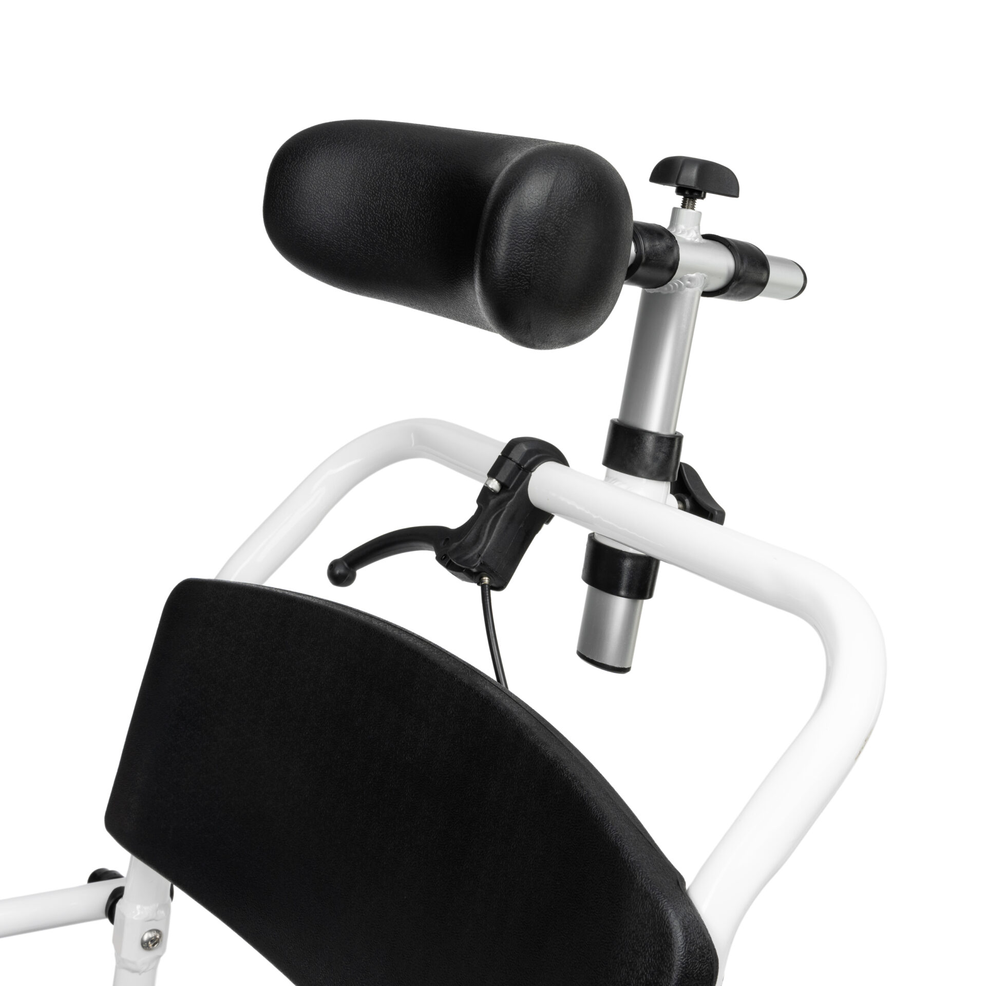 Scaun cu rotile pentru toaleta din aluminiu, manere rabatabile, tetiera, suporti picioare, alb, Timago